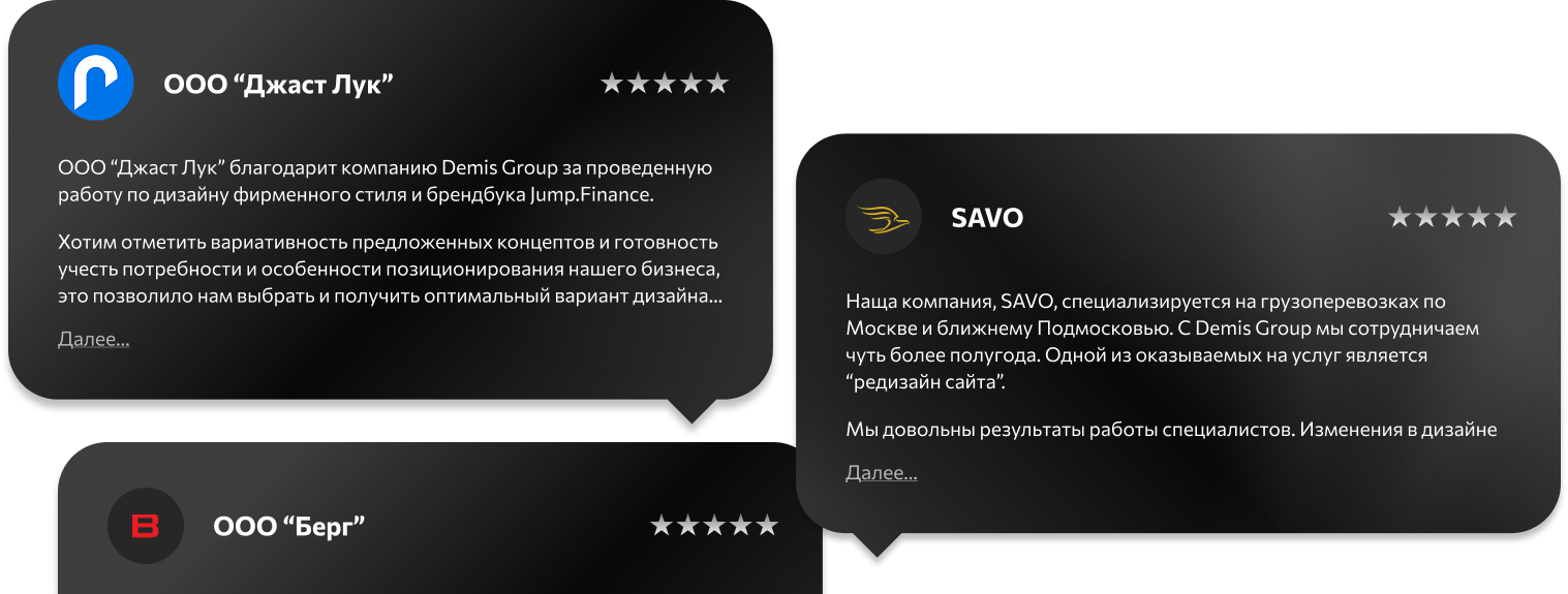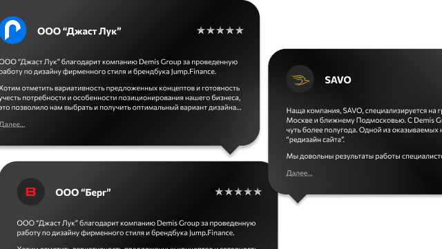 Наша цель - проектировать дизайн, который решает задачи клиента и развивает его бизнес. Мы очень ценим мнение наших заказчиков!