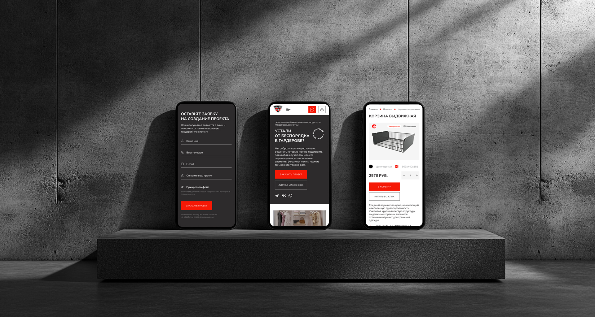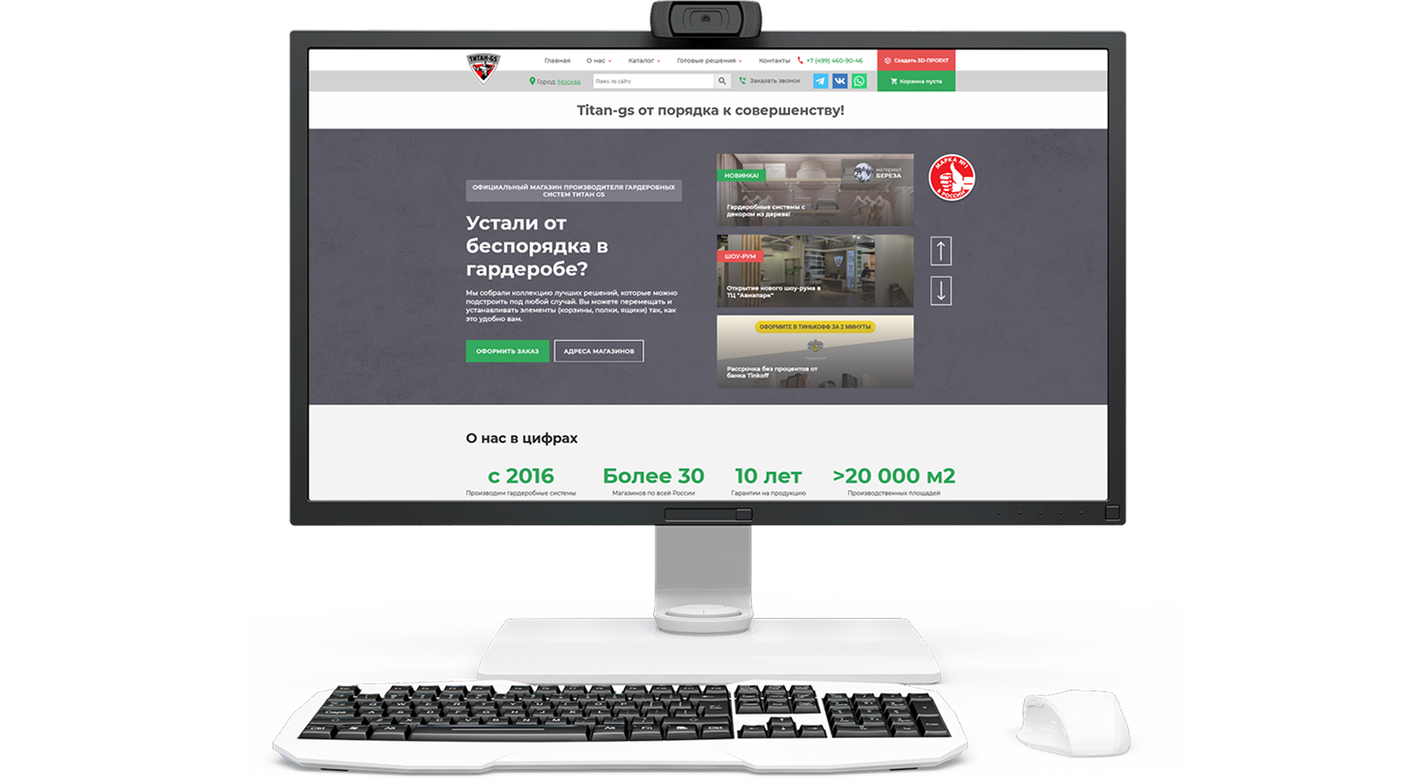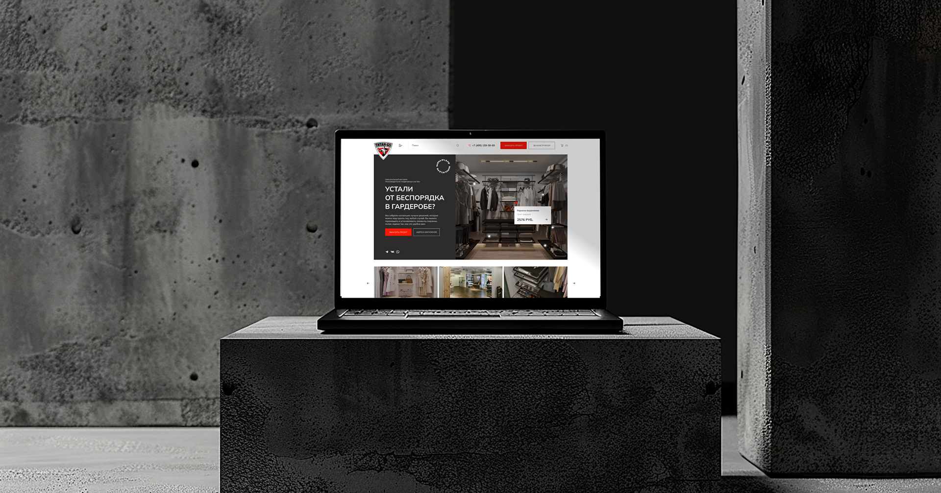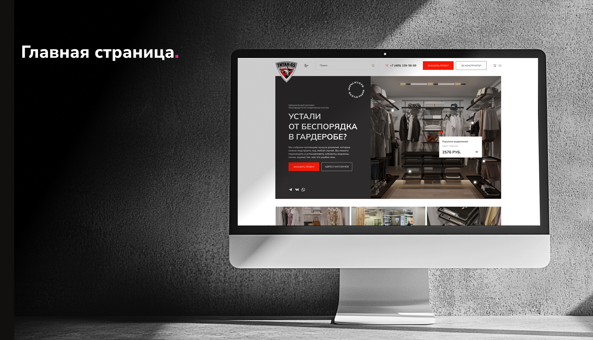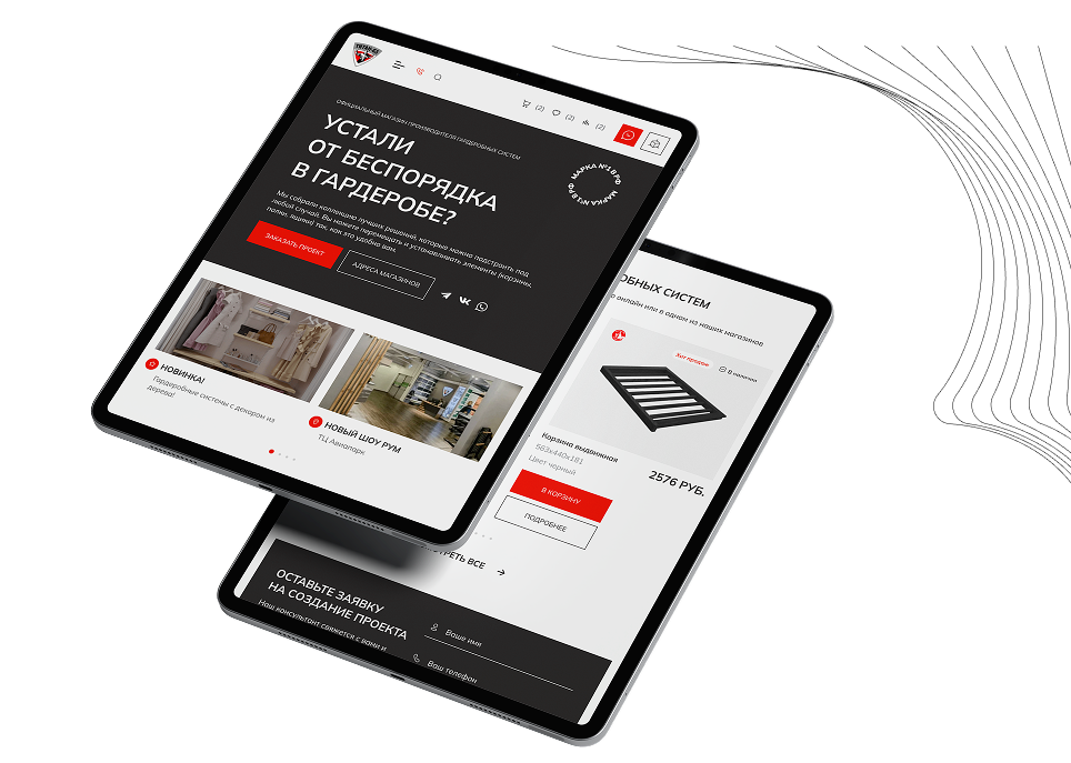 Цели работ: разработать сайт, который выгодно подчеркнёт преимущества выпускаемых брендом гардеробных систем, продемонстрирует их функциональность и удобство в повседневной жизни. Требовался минималистичный дизайн с сохранением фирменных цветов клиента.